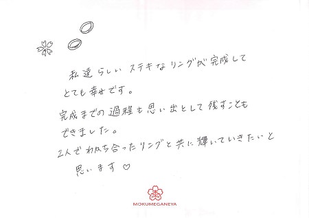 想像以上にすてきな仕上りのリングがいただけてとてもうれしかったです。