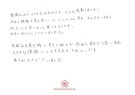 出来上がりが想像以上に美しく、とても嬉しく思います。