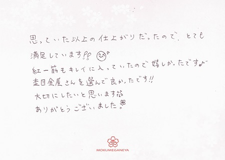 この度はとても素敵な指輪を作って頂きありがとうございました。