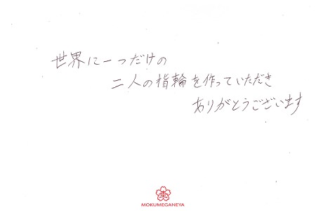 想像以上の良いものを結婚指輪にすることができました。大阪府H.K様 S.K様(お渡し担当:水野)