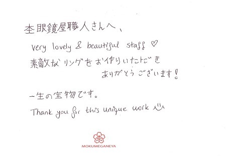 ステキなリングを作っていただき、ありがとうございました。