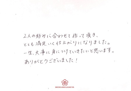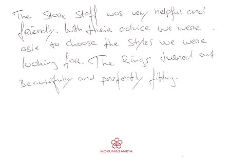 とてもステキなリングを作っていただき、ありがとうございました!!