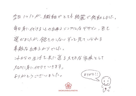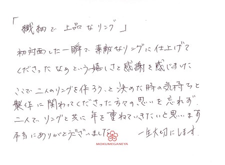 すてきな結婚指輪を作って頂き、ありがとうございました。