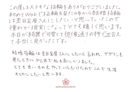 とてもすてきなマリッジリングをありがとうございました♡