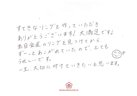 素敵なリングをつくっていただきありがとうございました。埼玉県M.S様 Y.I様(お渡し担当:法邑)