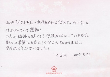 2人のイメージ通りのリングになりました。 宮城県 T.S様 K.O様(お渡し担当:佐藤)
