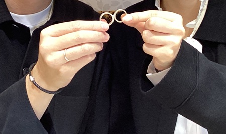 実際に出来あがった指輪はとてもきれいでお互い笑顔になりました。