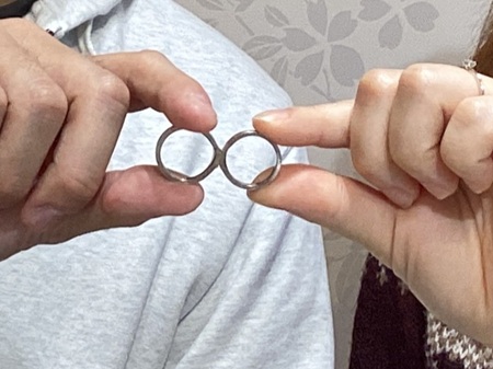指輪を選ぶ中で、他の店と違う柄の入った指輪が2人とも気に入り、