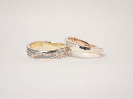 結婚指輪(マリッジリング)の木目金素材:ホワイトゴールド×ピンクゴールド×シルバー