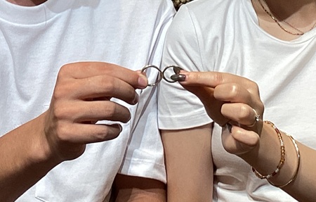 他店にはないデザインやセレモニーが決め手になり、杢目金屋さんを選びました。兵庫県 Y.O様 S.I様(お渡し担当:今江)