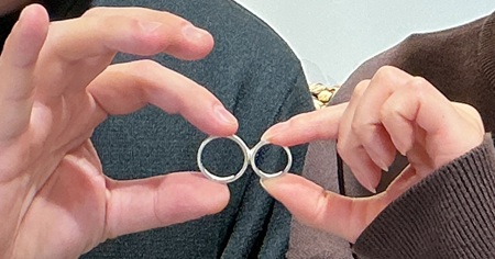 指輪を選ぶ時、一枚の板から2人の指輪ができたのを