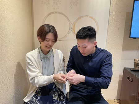 結婚指輪と一緒に両親へのプレゼントも同じ木目で作れたことが特別な思い出に残りました。 埼玉県 H.W様 S.W様(お渡し担当:柴田)