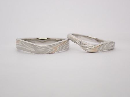 結婚指輪(マリッジリング)の木目金素材:プラチナ×ピンクゴールド×シルバー