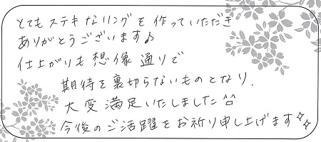 2人の思い出をカタチにして、この先ずっと身に着けることが出来るので、とても嬉しいです。