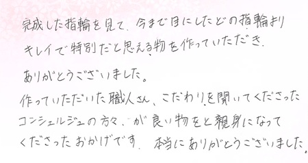 2人の想い出に結びつき易い指輪に出会えて良かったです。