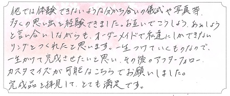 アドバイスなども貰えて良い指輪になりました。