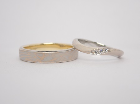 結婚指輪(マリッジリング)の木目金素材:ホワイトゴールド×ピンクゴールド×シルバー