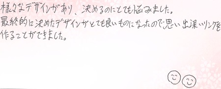 素敵な指輪をどうもありがとうございました。