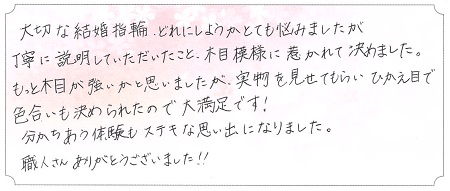ご対応いただき指輪の完成を一緒に喜んでくださり