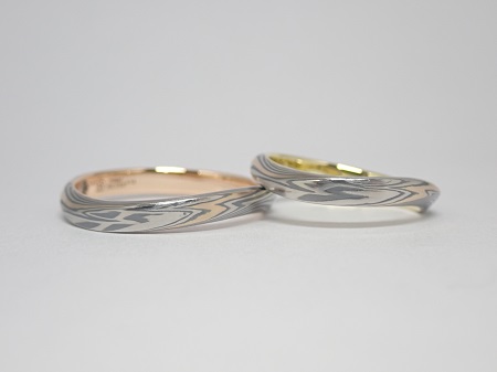 結婚指輪(マリッジリング)の木目金素材:ホワイトゴールド×ピンクゴールド×シルバー