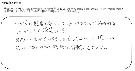 オリジナリティあふれた指輪になったと思います。 福島県 I.O様(お渡し担当:山田)