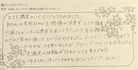 とてもステキな指輪に仕上げていただき、ありがとうございました。