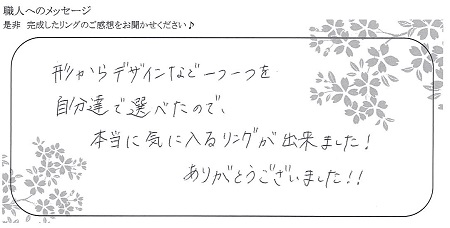 また、これほど小さい指輪を作って下さり、感謝の気持ちで一杯です。