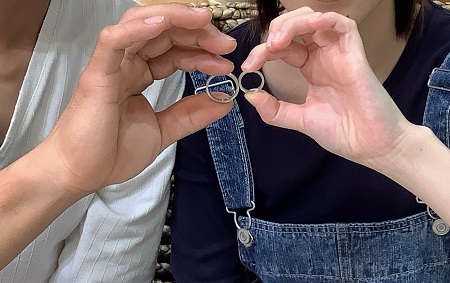 やはり、木目のデザインがあるのが貴重なのと、実際に「つながるカタチ」で自分の指輪作りを体験できるのが良かったと思います 愛知県 Y.S様 M.S様(お渡し担当:冨岡)