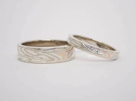結婚指輪(マリッジリング)の木目金素材:ホワイトゴールド×ピンクゴールド×シルバー