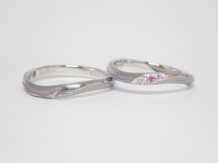 結婚指輪(マリッジリング)の木目金素材:ホワイトゴールド×ピンクゴールド×シルバー