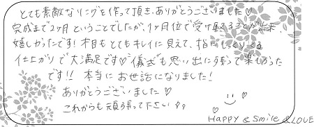 世界に一つだけの素敵なリングを作っていただけて大満足です!!! 東京都 M.N様 Y.N様(お渡し担当:長谷)
