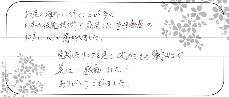 リングに込めた思いを形にしていただき、本当にありがとうございます。