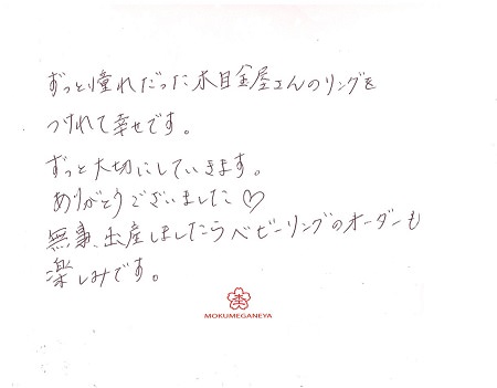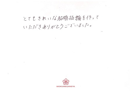 素敵なリングを仕上げて頂いてとても嬉しいです。 埼玉県 T.S様 Y.T様 (お渡し担当:間々田)