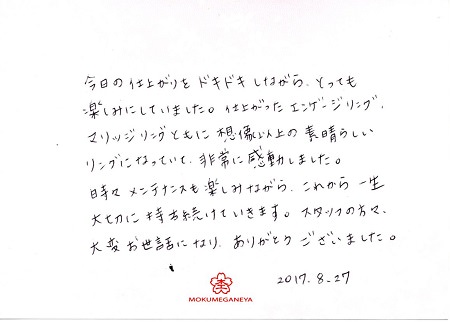 この度はとても素適なリングに仕上げて頂きありがとうございました。