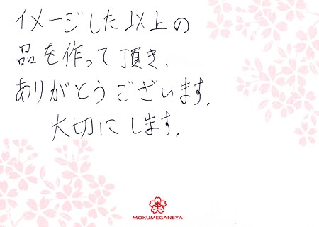 この度は、素敵なリングを作製していただき、ありがとうございます。