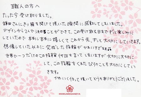二人が思っていた以上の物が出来あがったのでとても感謝しております。