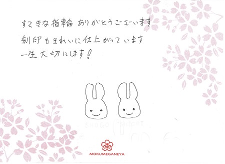 2人の想いをカタチにした世界に1組だけの結婚指輪をオーダー頂きました 埼玉県 F.I様 A.T様(お渡し担当:坪井)