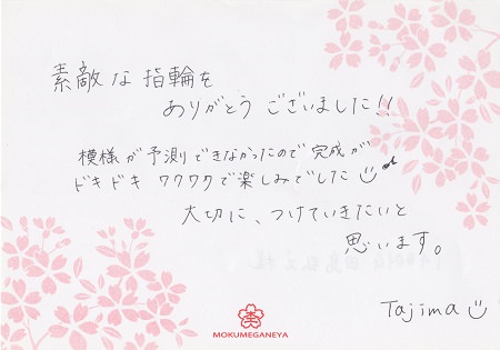 2人の想いをカタチにした世界で1組だけの結婚指輪をオーダーメイド頂きました 福島県 T・T様 S・T様(お渡し担当:石田)