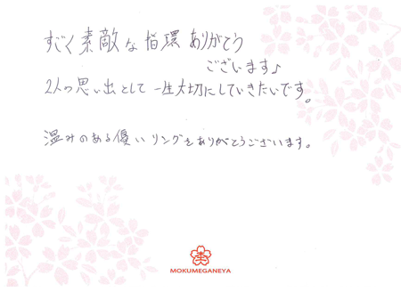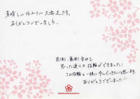 自分まで笑顔になれるようなそんなすばらしい指輪をつくって下さった
