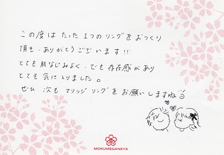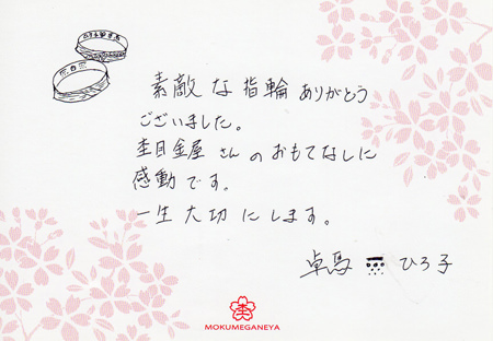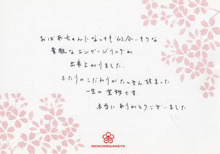 でき上がってきたリングは、想っていた以上のリングでとても嬉しく思います。