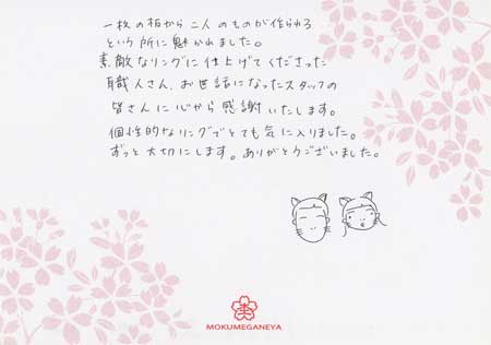 木目金の結婚指輪をオーダーメイドいただきました 埼玉県 金ヶ崎様ご夫妻 お渡し担当(吉田)