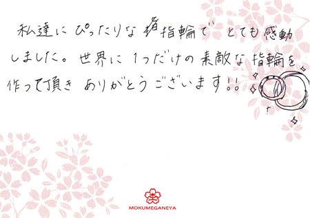 木目金の結婚指輪をオーダーメイドいただきました 埼玉県 祥悟様 しおり様(お渡し担当:山田)