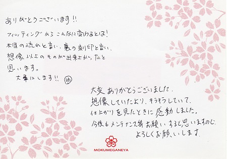 木目金の婚約指輪をオーダーメイドいただきました 埼玉県 T.K様 Y.H様(お渡し担当:飯島)