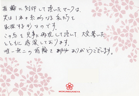木目金の婚約指輪をオーダーメイドいただきました 東京都 坂本様(お渡し担当:鎌田)