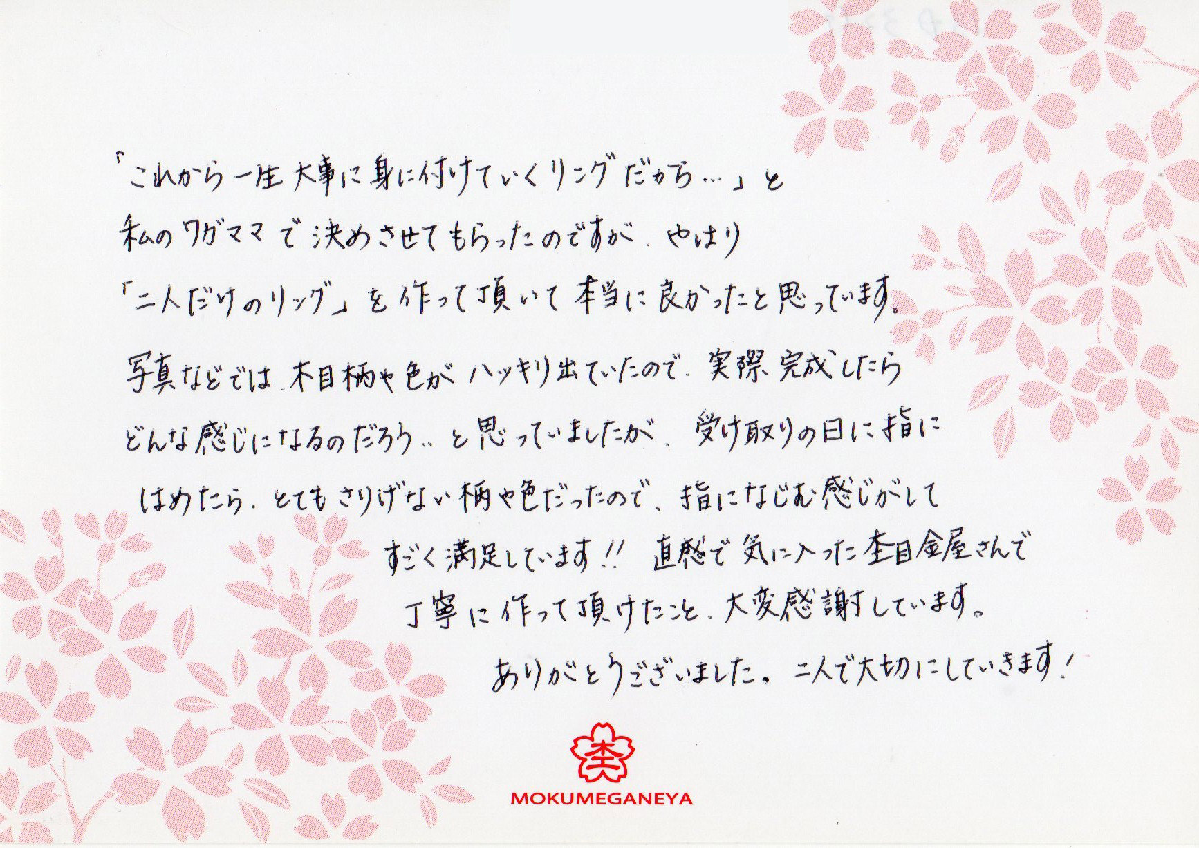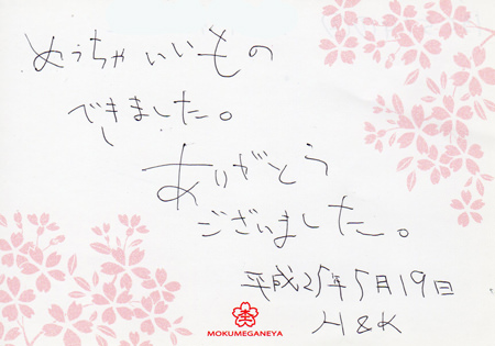 本当に杢目金屋さんに出会って私達だけ2人だけの
