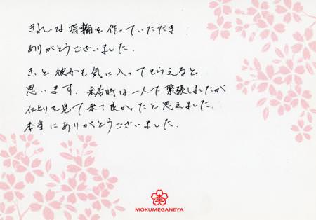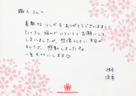 木目金の婚約指輪・結婚指輪をオーダーメイドいただきました 千葉県 上池様ご夫妻(お渡し担当:徳永)
