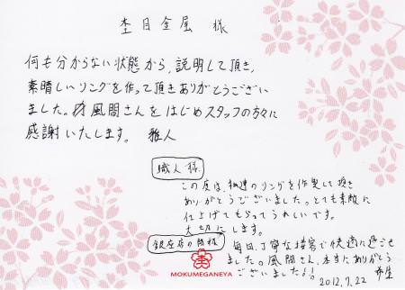 杢目金の結婚指輪をオーダーメイドいただきました 東京都 T.K様 Y.K様(お渡し担当:松岡)