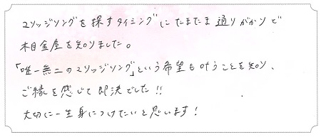 大変素敵なリングを制作できてうれしく思います! 東京都 S.O様 K.N様 (お渡し担当:竹川)
