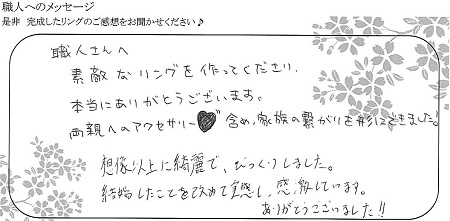 婚約指輪をお作りいただきました。 東京都 G.O様(お渡し担当:顧)