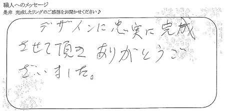 完成品も思っていた以上に素敵な仕上がりで、大満足でした。